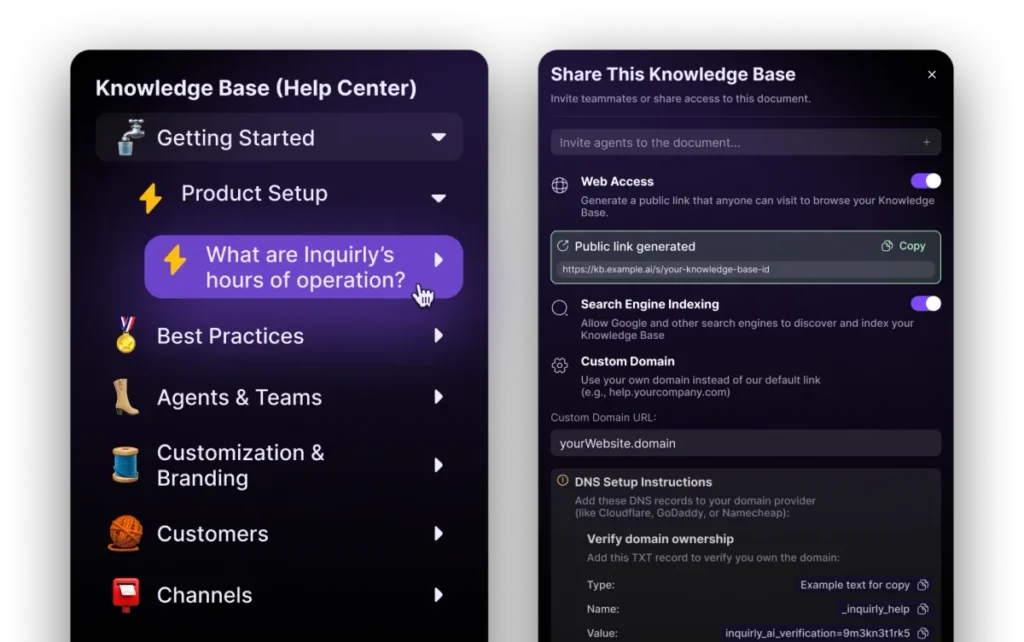 Traditional chatbots follow fixed scripts. Inquirly’s AI agent uses your knowledge base and ticket history to respond accurately and dynamically, seamlessly escalating to humans when needed for a natural experience.